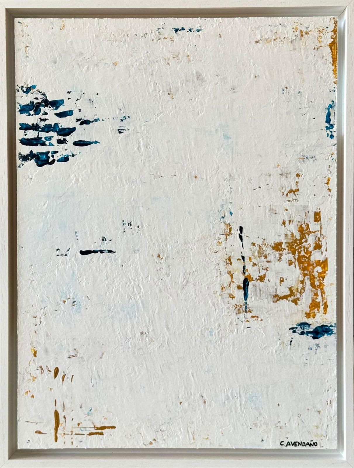 Cada panel del tríptico parece encarnar una fase distinta de esta "ilusión". En el primer panel, predominan los tonos blancos, amarillos y azules, creando una atmósfera de calma, serenidad, casi de despojo. Las texturas aparecen desgastadas, como si la superficie hubiera sido erosionada con el tiempo. Este espacio parece representar el concepto de una ilusión que, aunque en su inicio es clara y definida, gradualmente empieza a desmoronarse. La presencia de sutiles marcas azules, que atraviesan la obra de manera horizontal, refuerza la sensación de líneas temporales o barreras que limitan lo que está percibiendo el espectador.